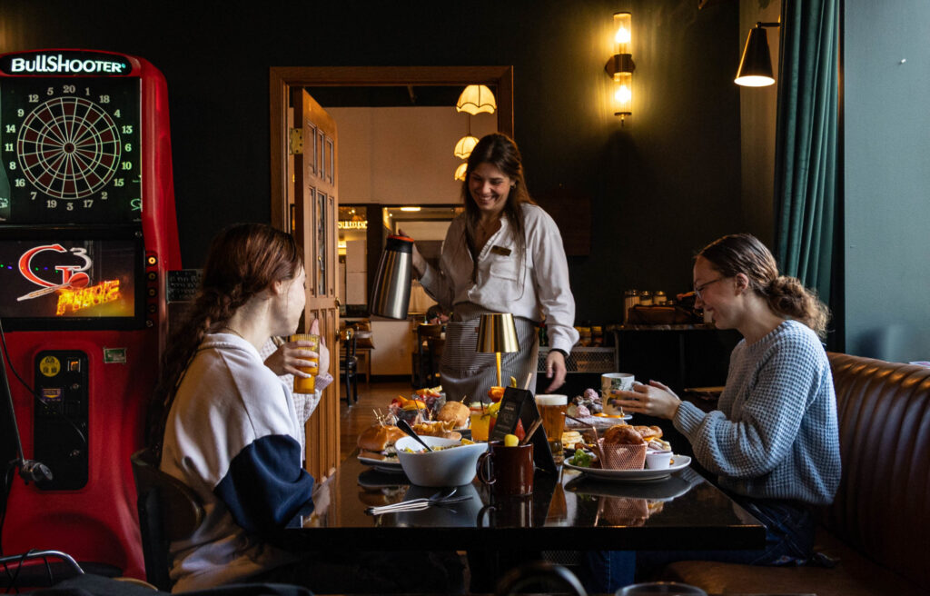 Located inside the beautifully restored Brooks Hotel, our Restaurant & Lounge offers a relaxed, welcoming place to gather right in the best downtown Wallace location. Guests love the mix of atmosphere, attentive service, and flavorful food and drinks, whether starting the day with our award winning breakfast, meeting friends, or unwinding after exploring the Silver Valley. Stop by to experience the charm in person, and visit our website for menus, hours, and upcoming happenings. We cater parties and events and love hosting brunch in our lounge for your friends after your unforgettable nights.